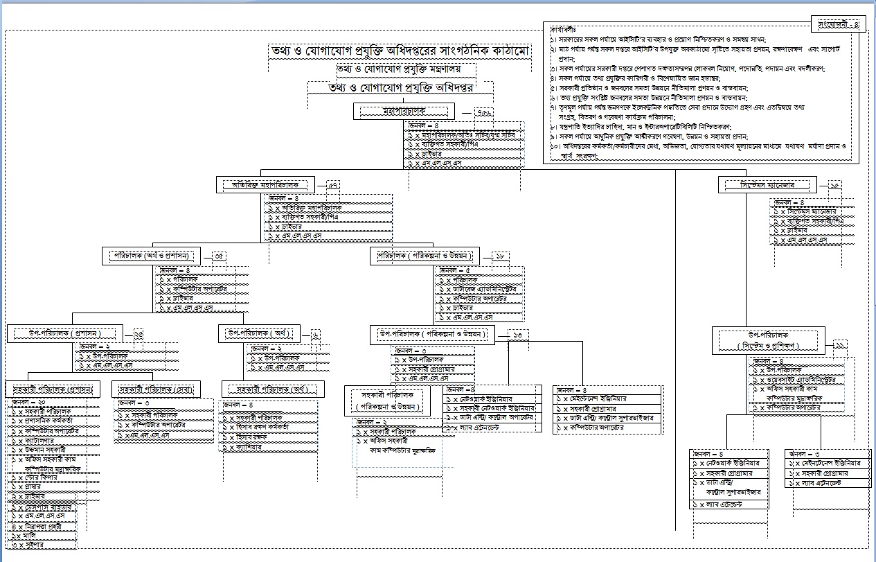 *** বর্তমানে জেলা ও উপজেলা কার্যালয়ের সাংগাঠনিক কাঠামোতে পরিবর্তন এসেছে। এখন এই সাংগাঠনিক কাঠামোতে জেলা কার্যালয়ের জন্য একজন নেটওয়ার্ক ইঞ্জি. একজন অফিস সহায়ক ও একজন পরিচ্ছন্ন কর্মী এবং উপজেলা কার্যালয়ের জন্য একজন ডাটা এন্ট্রি অপারেটর ও একজন অফিস সহায়ক যুক্ত হয়েছে ।